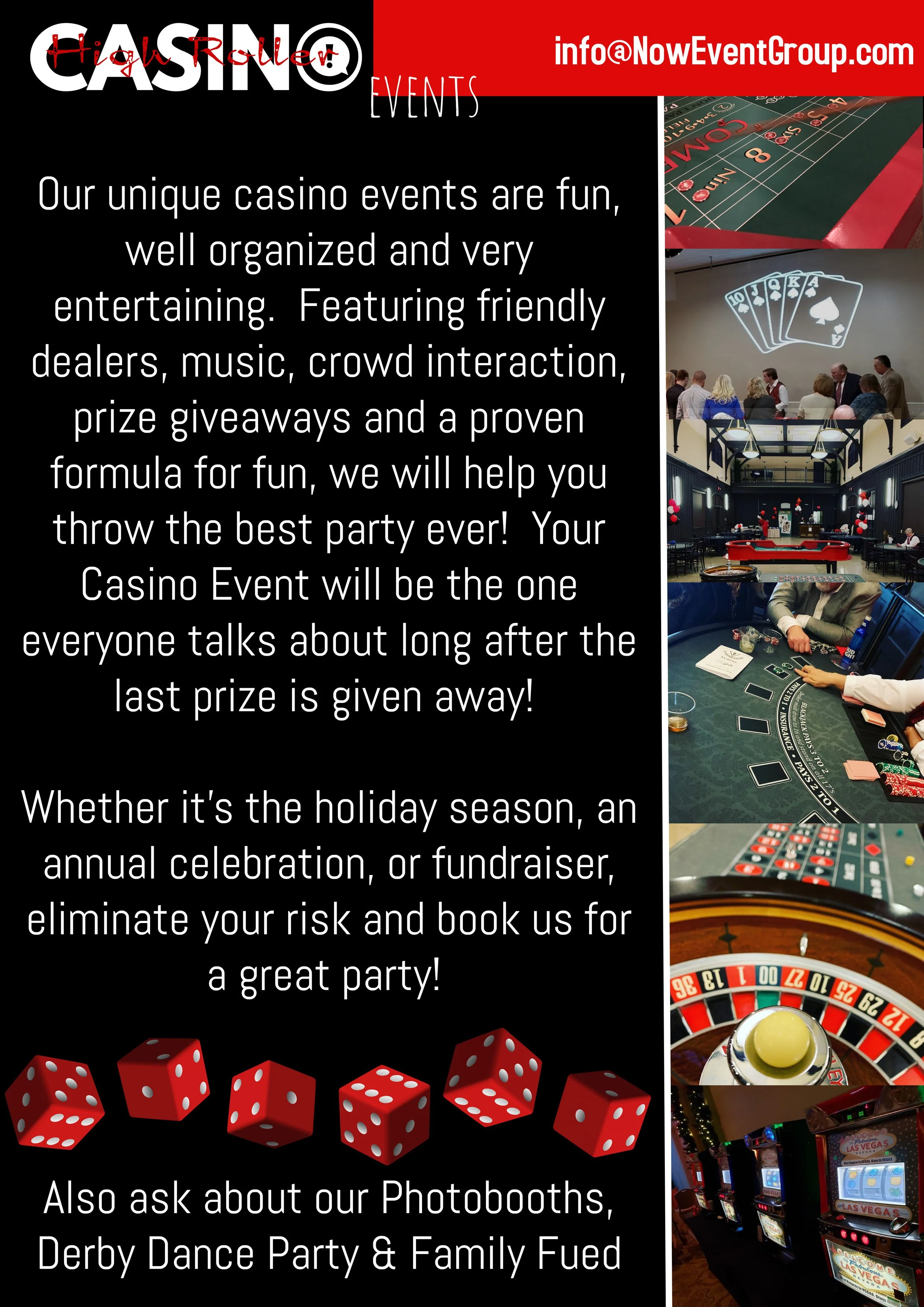 Our unique casino events are fun, well organized and very entertaining. Featuring friendly dealers, music, crowd interaction and a proven formula for fun!!!